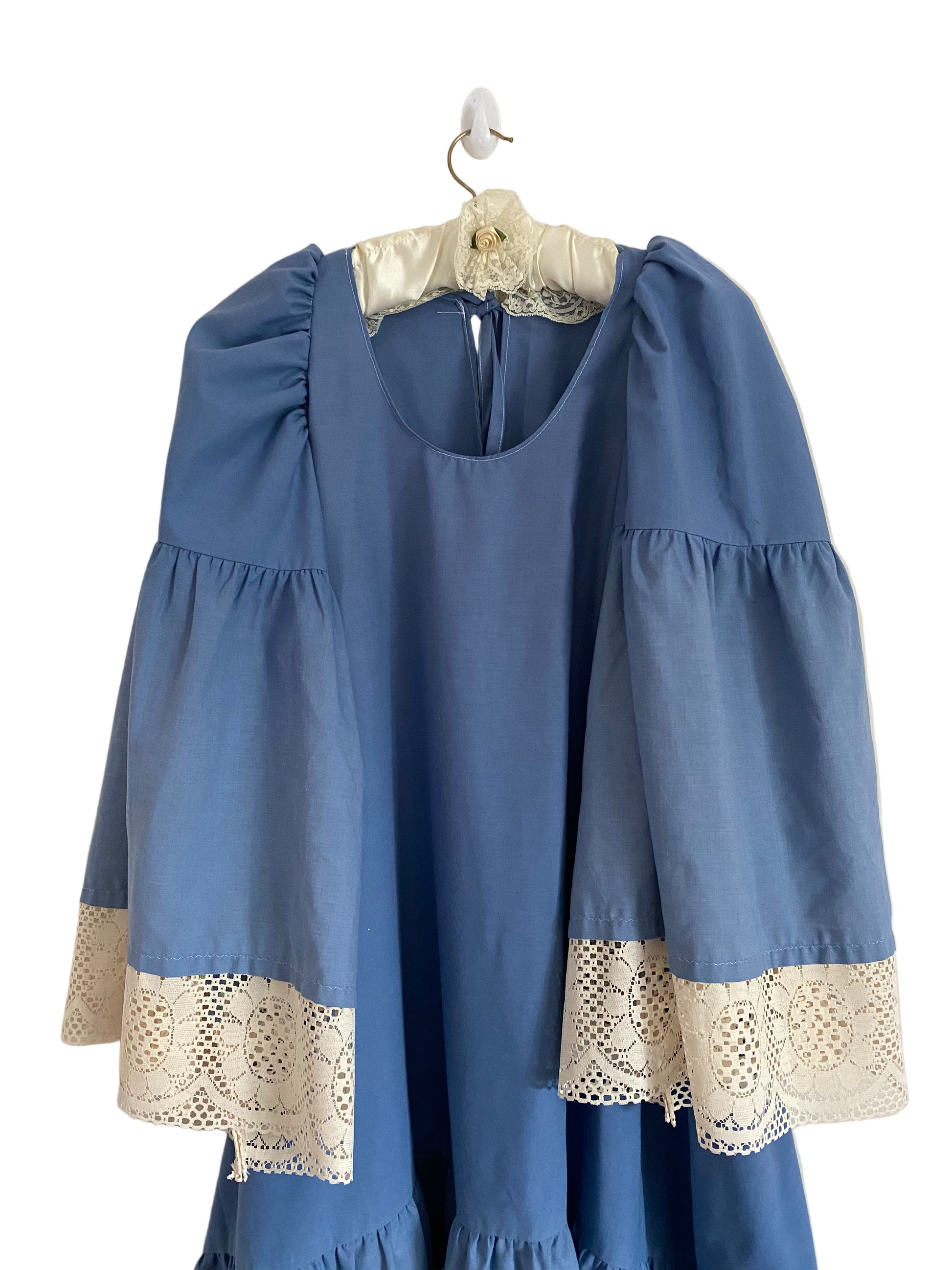 The Dorathy Midi Dress has been up-cycled from vintage bed linens, featuring a beautiful lace edge that feels both classic and vintage. Carefully crafted to drape and flow with ease, this dress is designed for comfort without compromising on style. The Dorathy is effortless, timeless, and full of quiet charm.