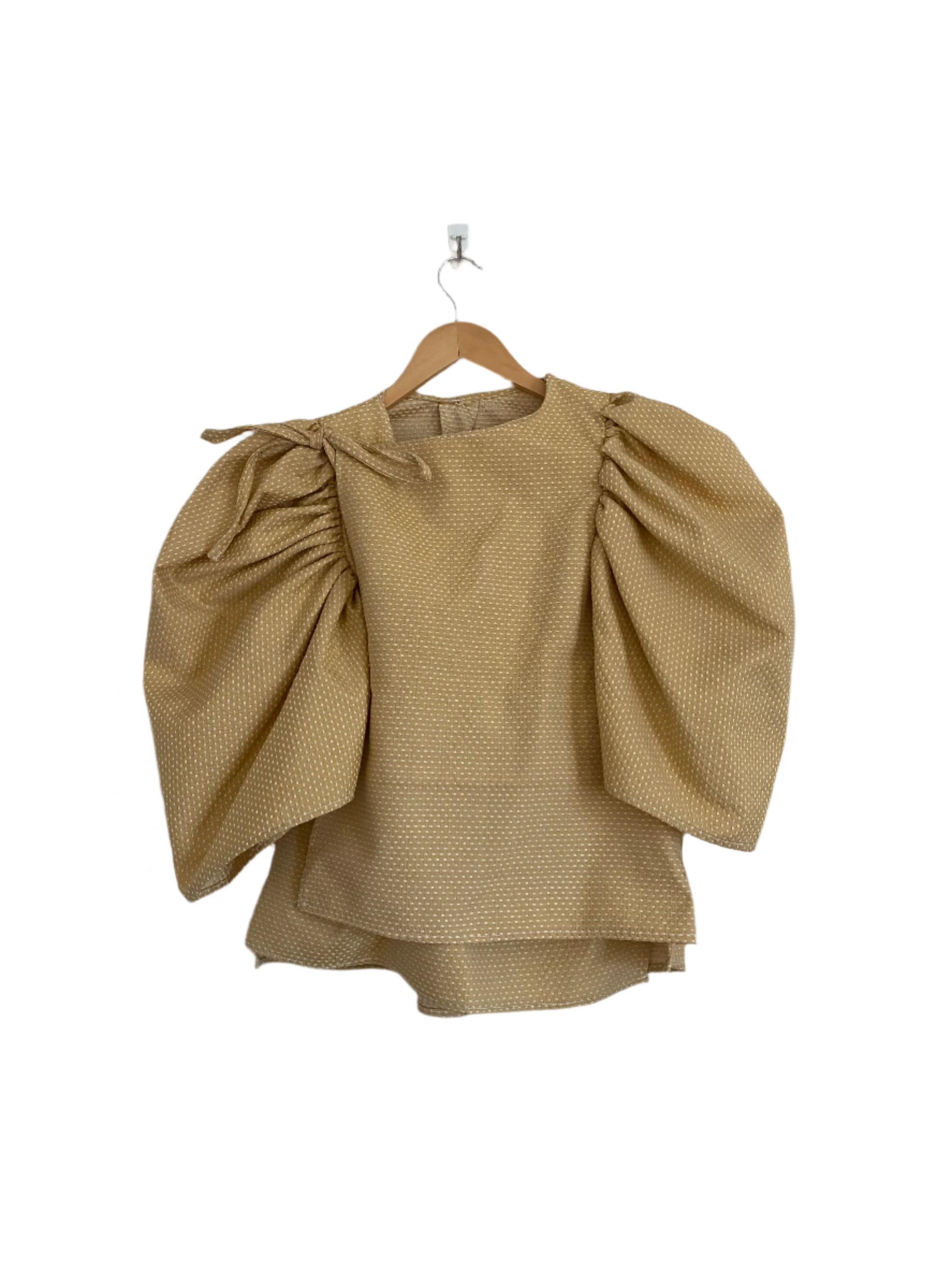 The Eve blouse is the ideal autumn piece for layering as the weather cools. Featuring a crossover front and detachable collar, it offers a relaxed, boxy fit. With its voluminous puffy sleeves and adjustable ties, this blouse can be worn casually over everyday outfits or styled as a jacket over a dress for a more elevated look.
