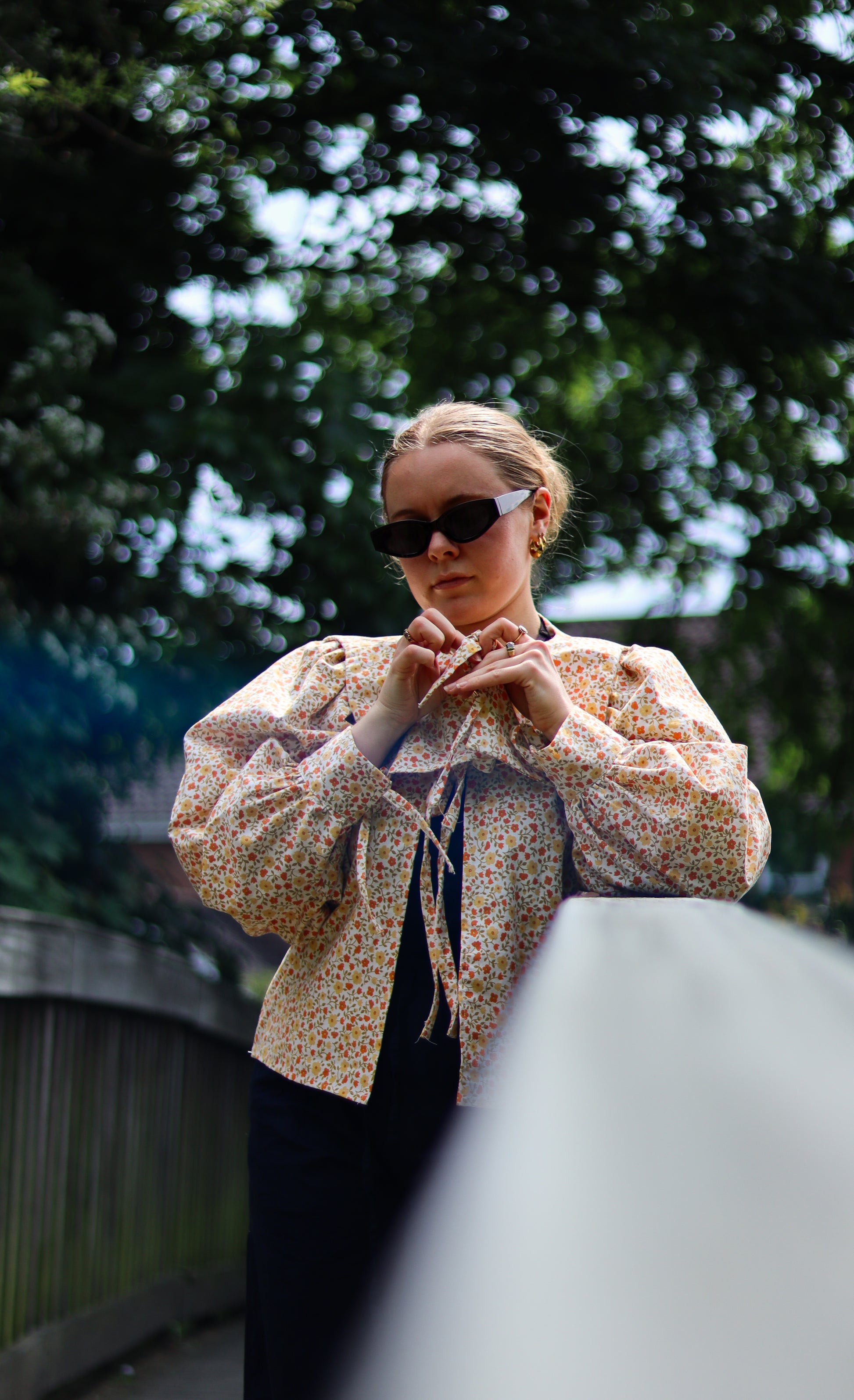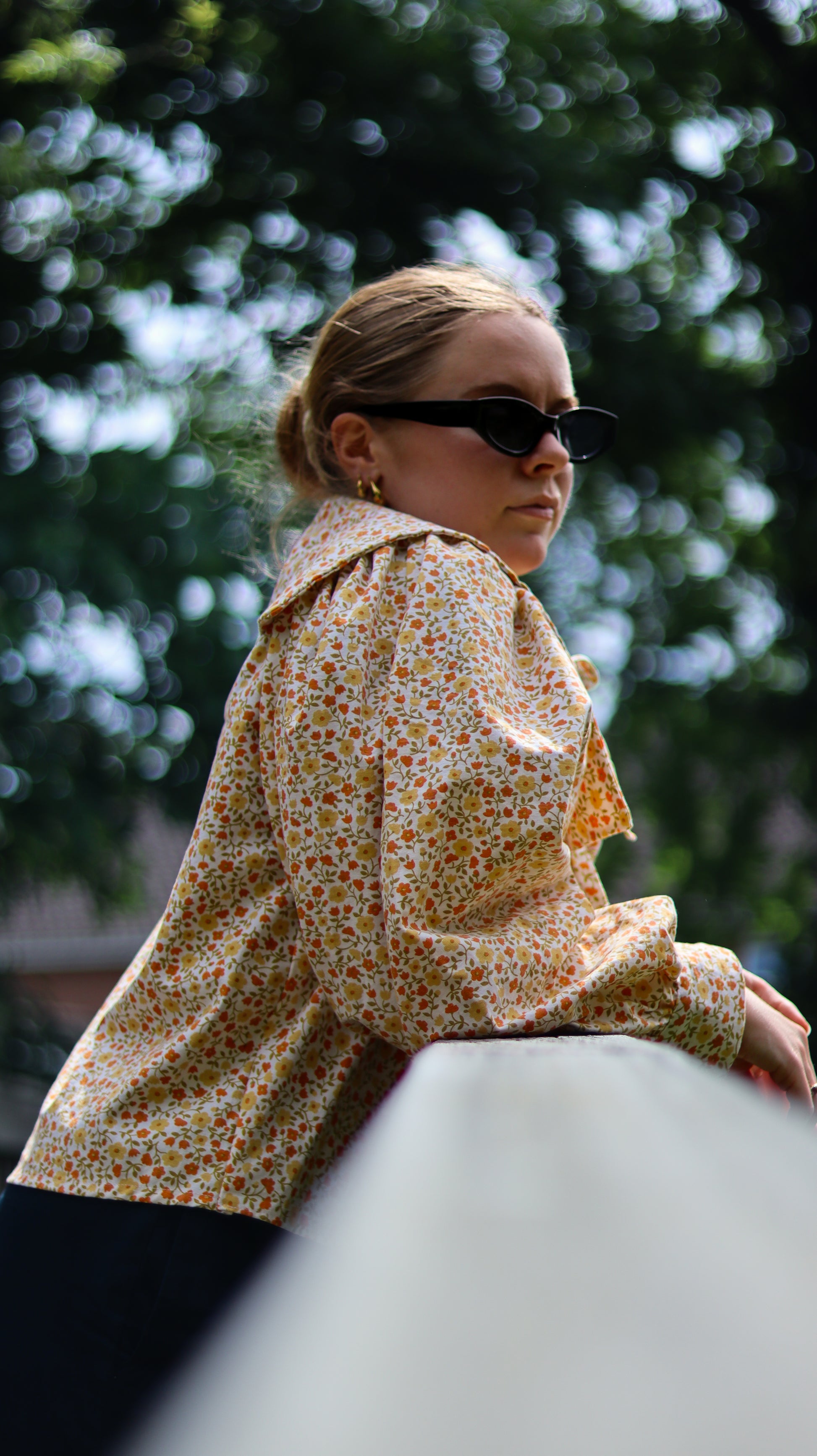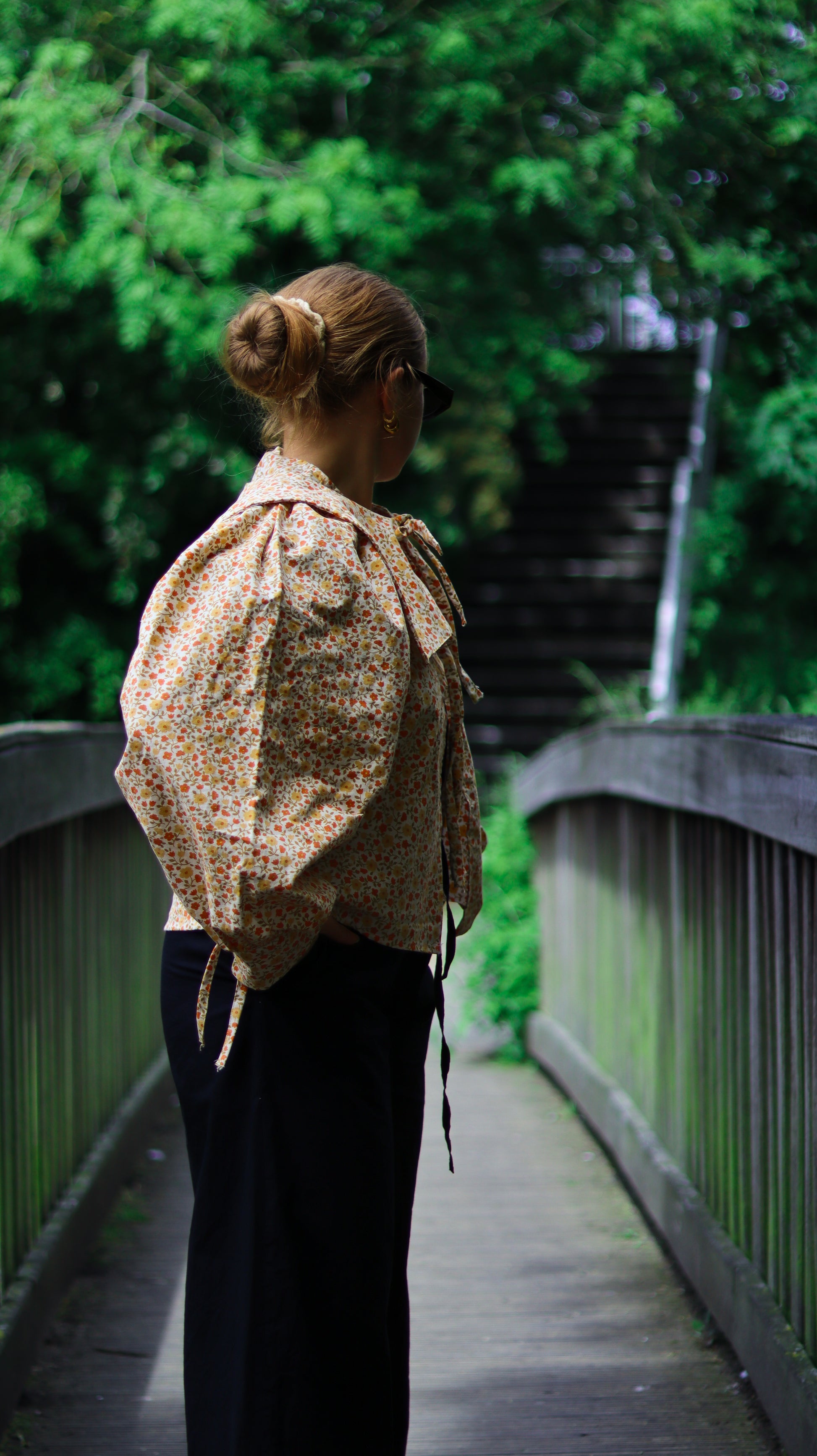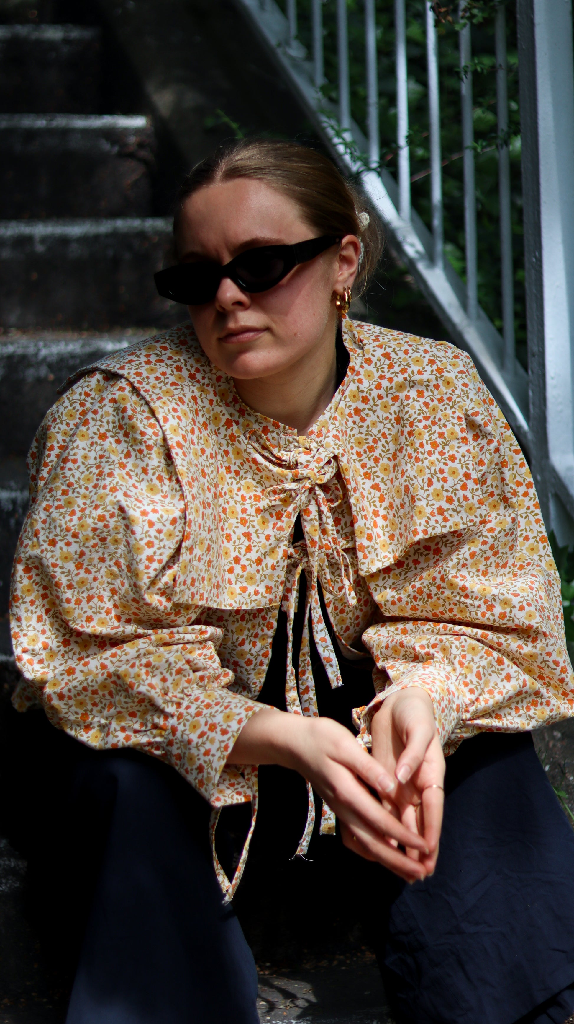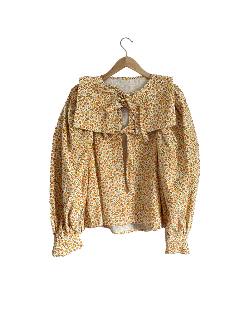 Introducing the Everlyn Blouse, crafted from 100% cotton vintage curtains. The ditsy floral print adds a touch of vintage charm, while the detachable collar and tie cuffs offer versatile styling options. With a comfortable boxy fit, this blouse is perfect for everyday wear, bringing effortless elegance to your wardrobe.
