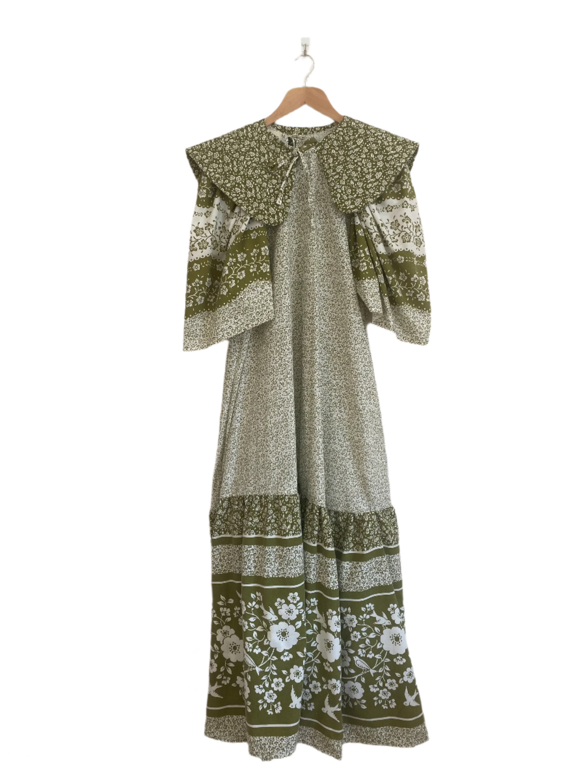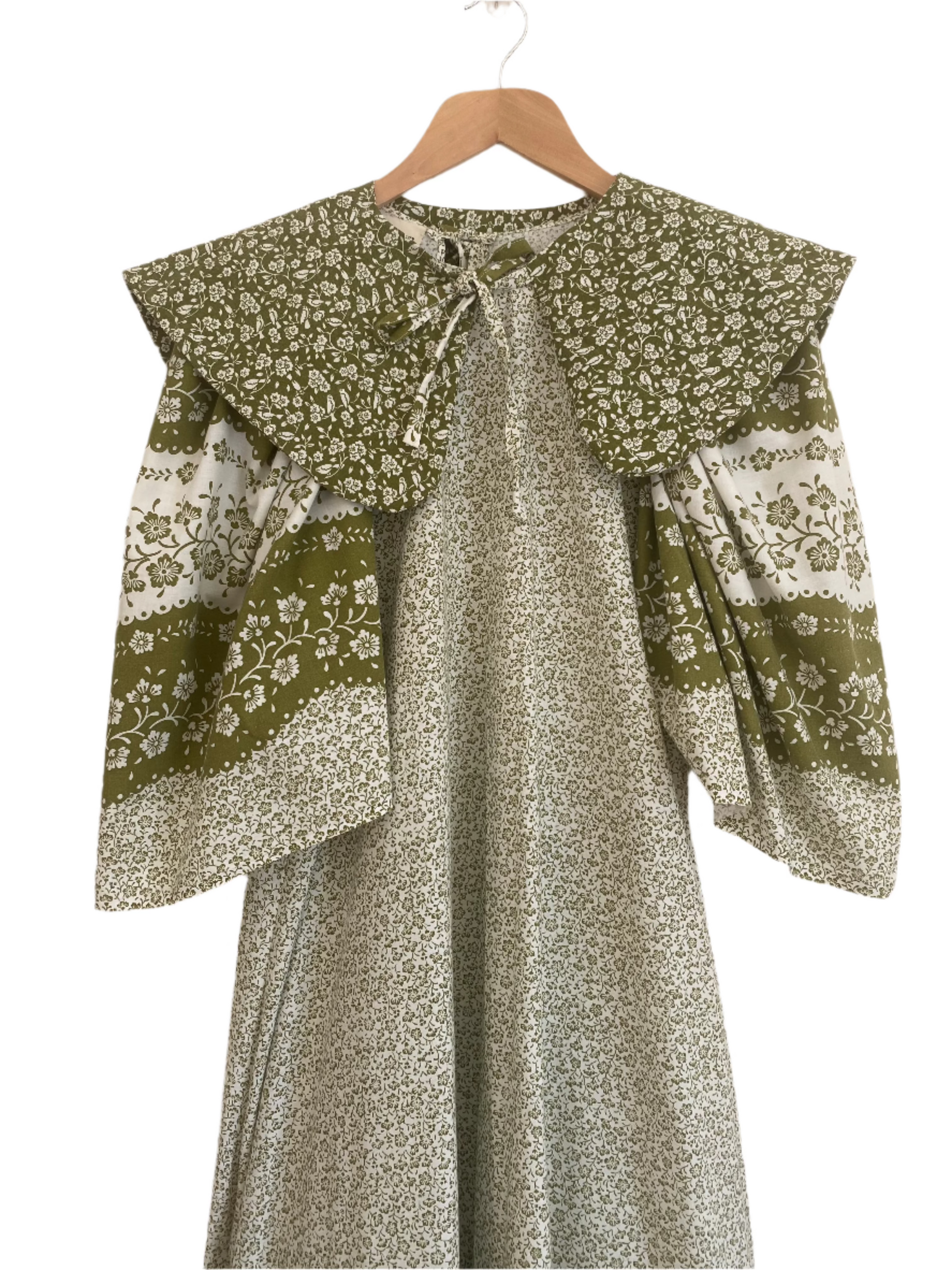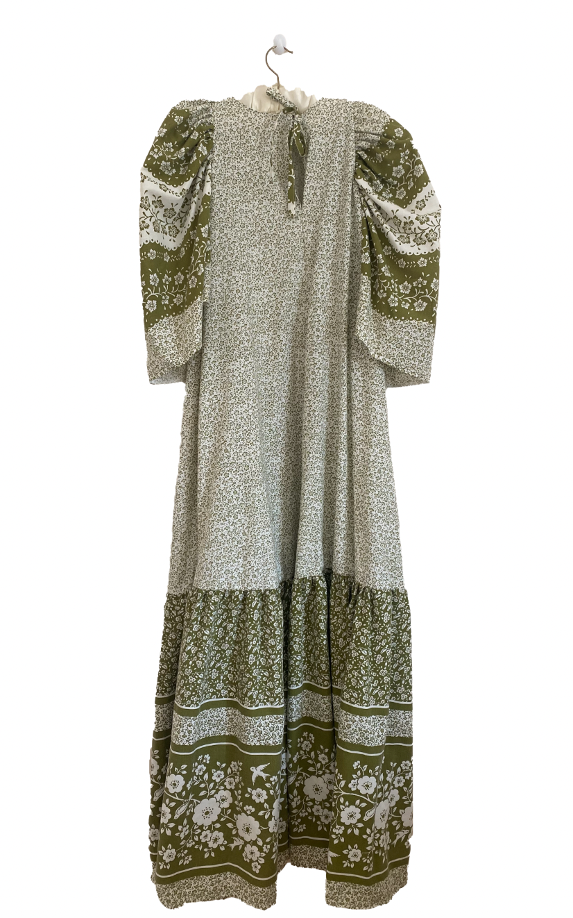 The Evie dress is a beautifully hand-crafted piece made from vintage bed linen, featuring a stunning framed print along the tiered bottom section. Each part of the print has been thoughtfully designed to enhance the dress's shape, creating a cohesive and eye-catching look. With a detachable collar and a tie-back detail, this dress offers a relaxed, easy fit that's perfect for any occasion. Its unique design and attention to detail make it a standout addition to your wardrobe!