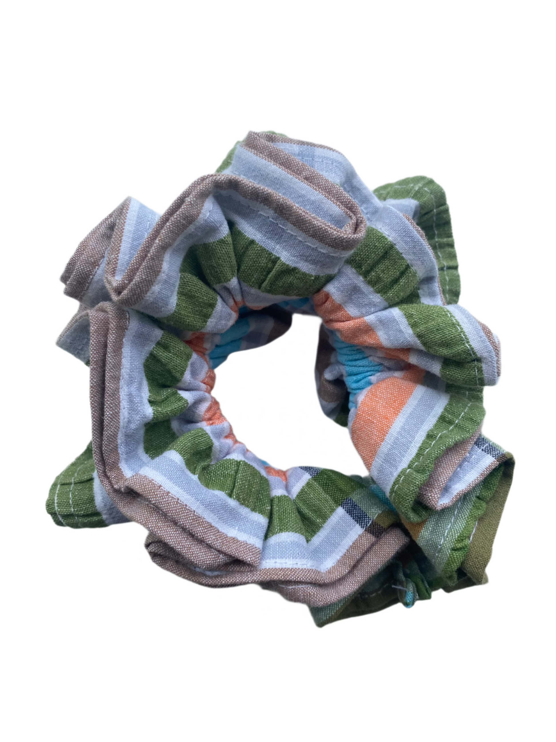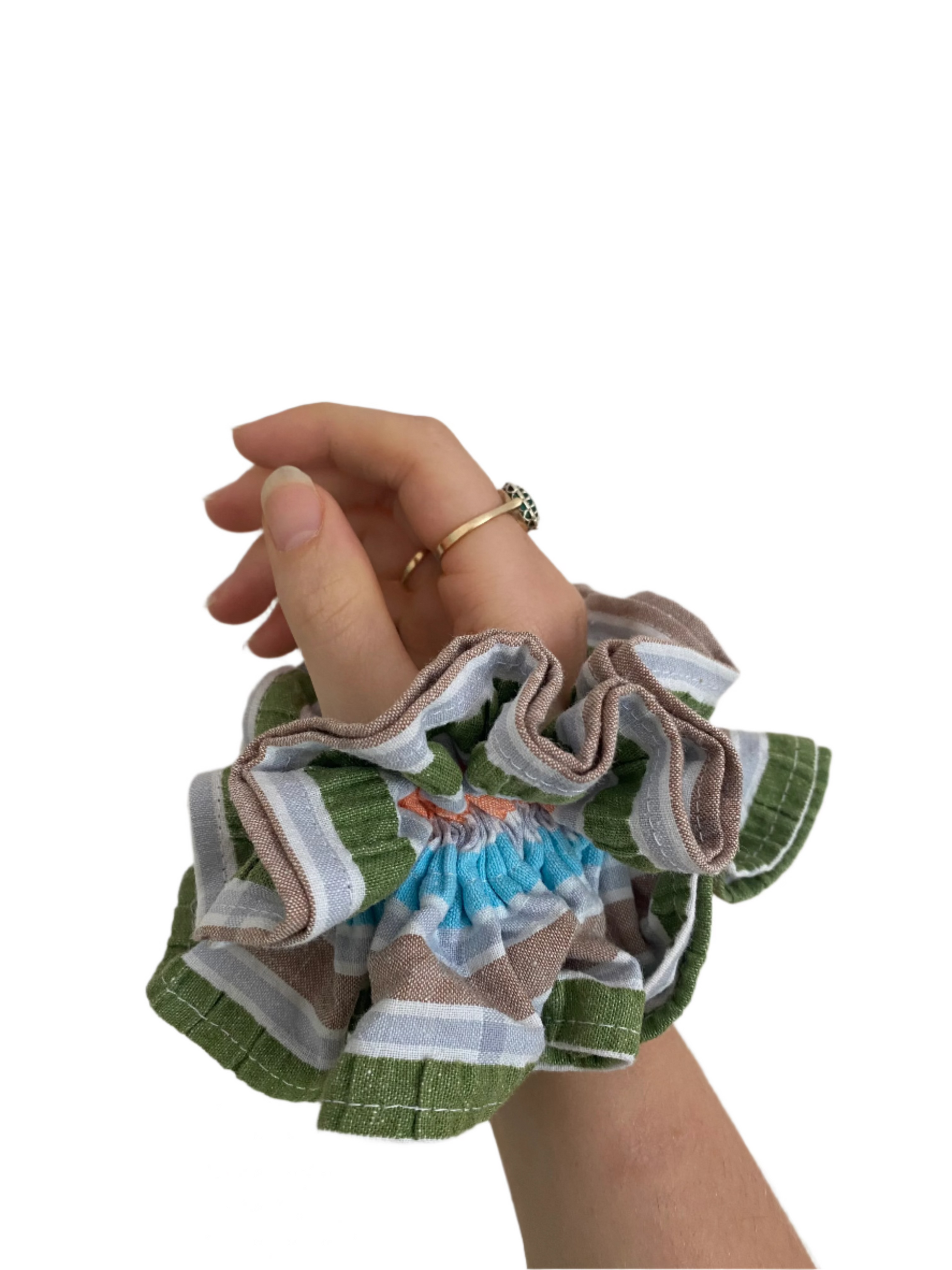 Made from upcycled vintage fabric, these scrunchies are bursting with volume, texture, and charm. Each one is unique, full of life, and the perfect finishing touch to any look. Whether in your hair or on your wrist, every outfit deserves a matching scrunchie